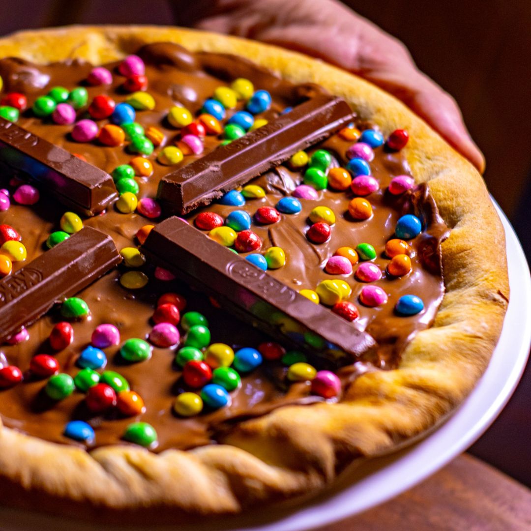 Nossa massa tradicional crocante, delicioso doce de leite, bananas fatiadas, cream cheese e canela.